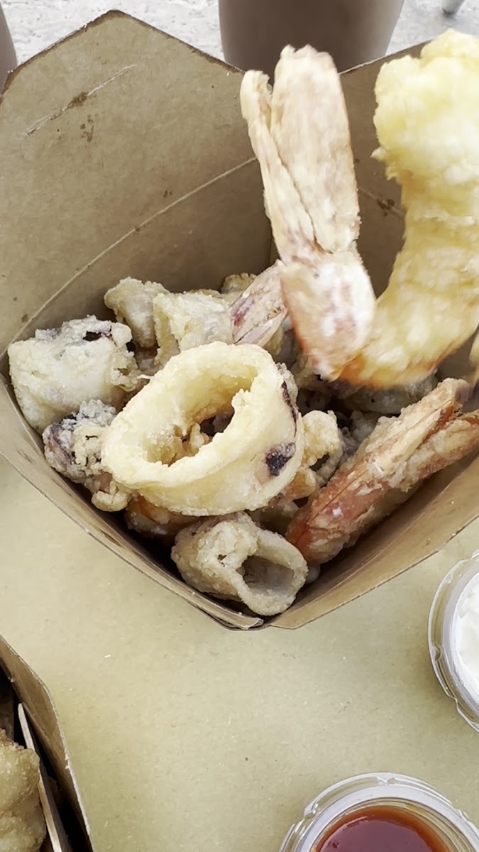 I had the Calamari e Gamberi and it was delicious!! Crispy, cooked to perfection, and just the right amount of seasoning. If you want a quick lunch check this place out!