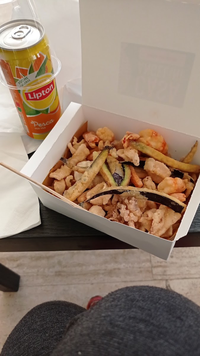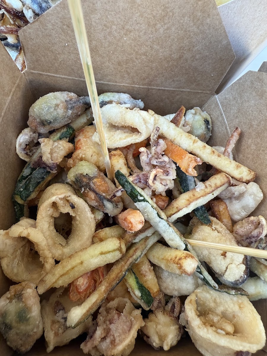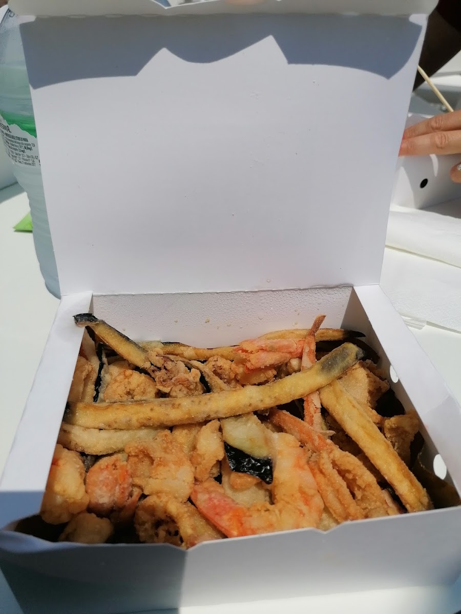 Had the calamari and gamberi fritto, which was good, but too pricey: 11 euros for this box.