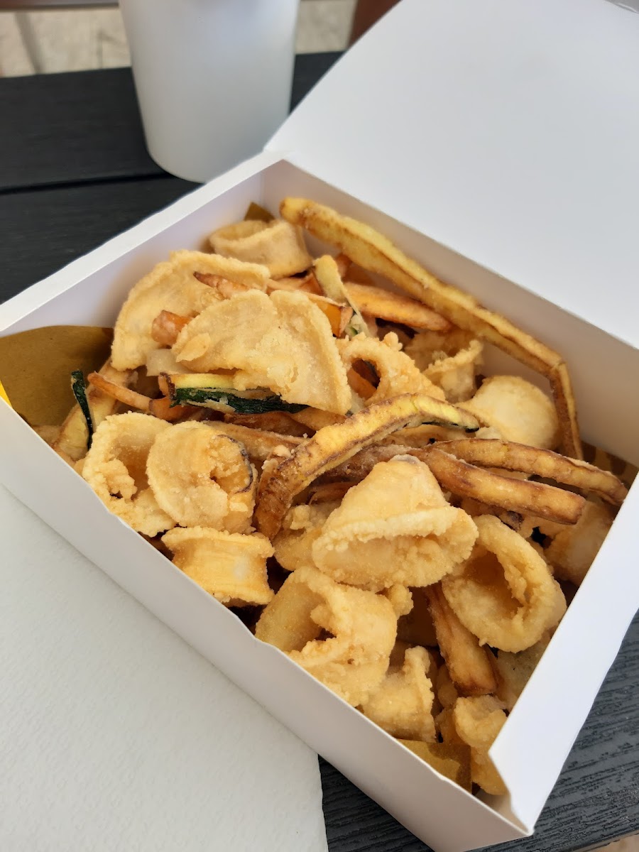 The fried mixture of fish was very good. We had the "Calamarata" consisting of fried calamari rings, small squid and various vegetables such as pepperoni, eggplant and zucchini. Portion was enough for two people as a snack. Will surely come to eat here again!